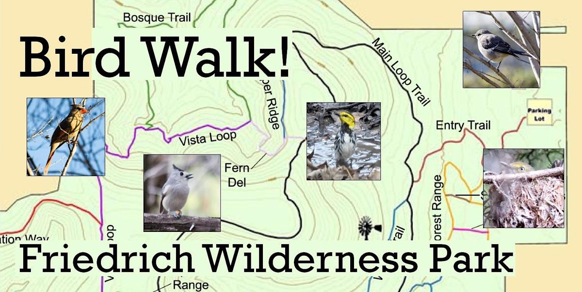 We will start at the Friedrich Wilderness Park classroom and move out onto the lower park trails (accessible) to observe birds.