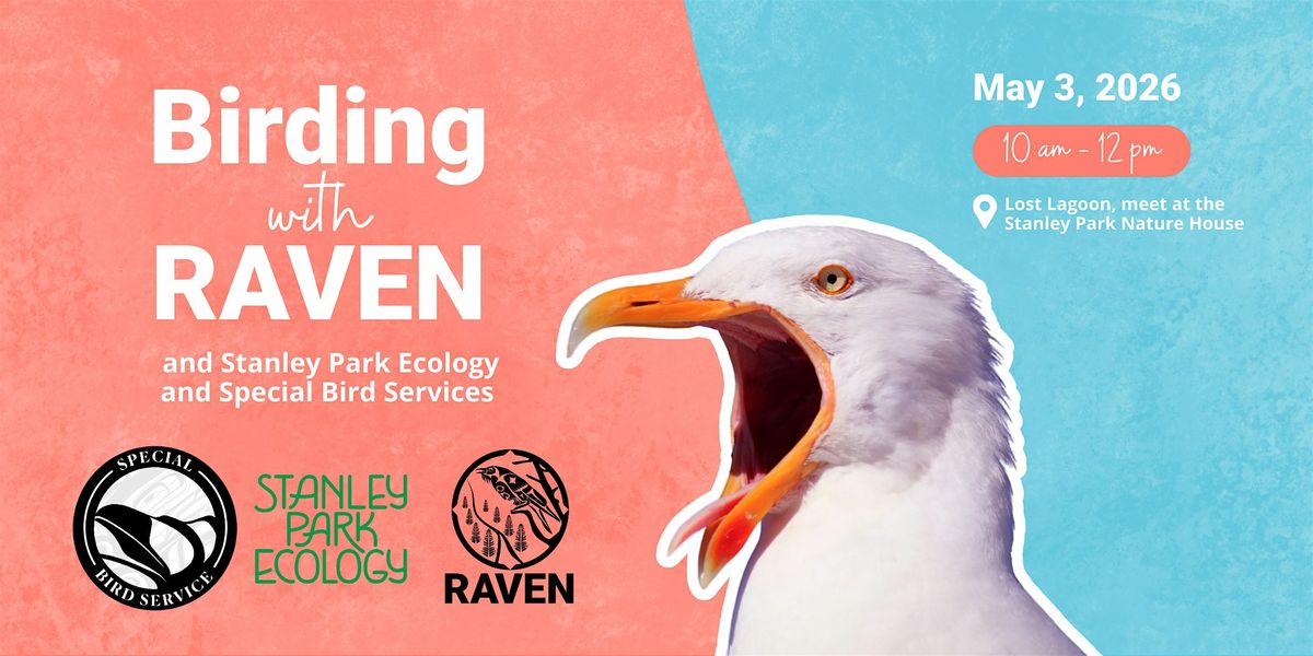 Join RAVEN, Stanley Park Ecology, and Special Bird Services for an exciting birding adventure through Stanley Park. Led by RAVEN’s Board President, lawyer, and avid birder Jeffrey Nicholls, attendees will meet at the Stanley Park Nature House to connect with fellow nature-lovers, learn about RAVEN’s work, and hear more about our campaign with the Mowachaht-Muchalaht First Nation before going out birding around Ch’ekxwa’7lech (Lost Lagoon).