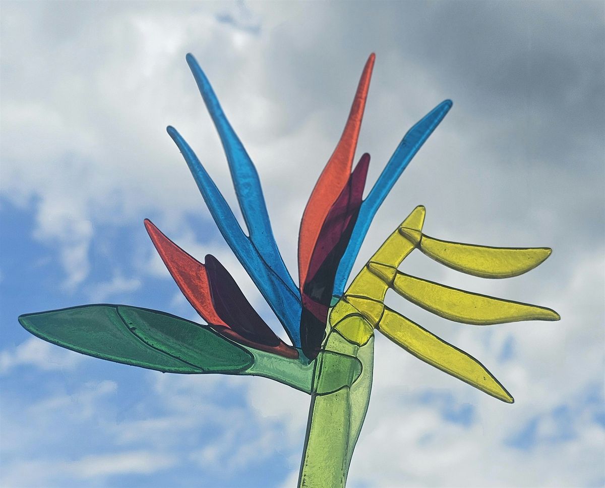 Envision your own Birds of Paradise in this floral fused glass class. Using vibrant colors that beam in the sun, this class will involve creating your own flowers as plant stakes; a terracotta pot with sand and moss will be included to display your exquisite work.