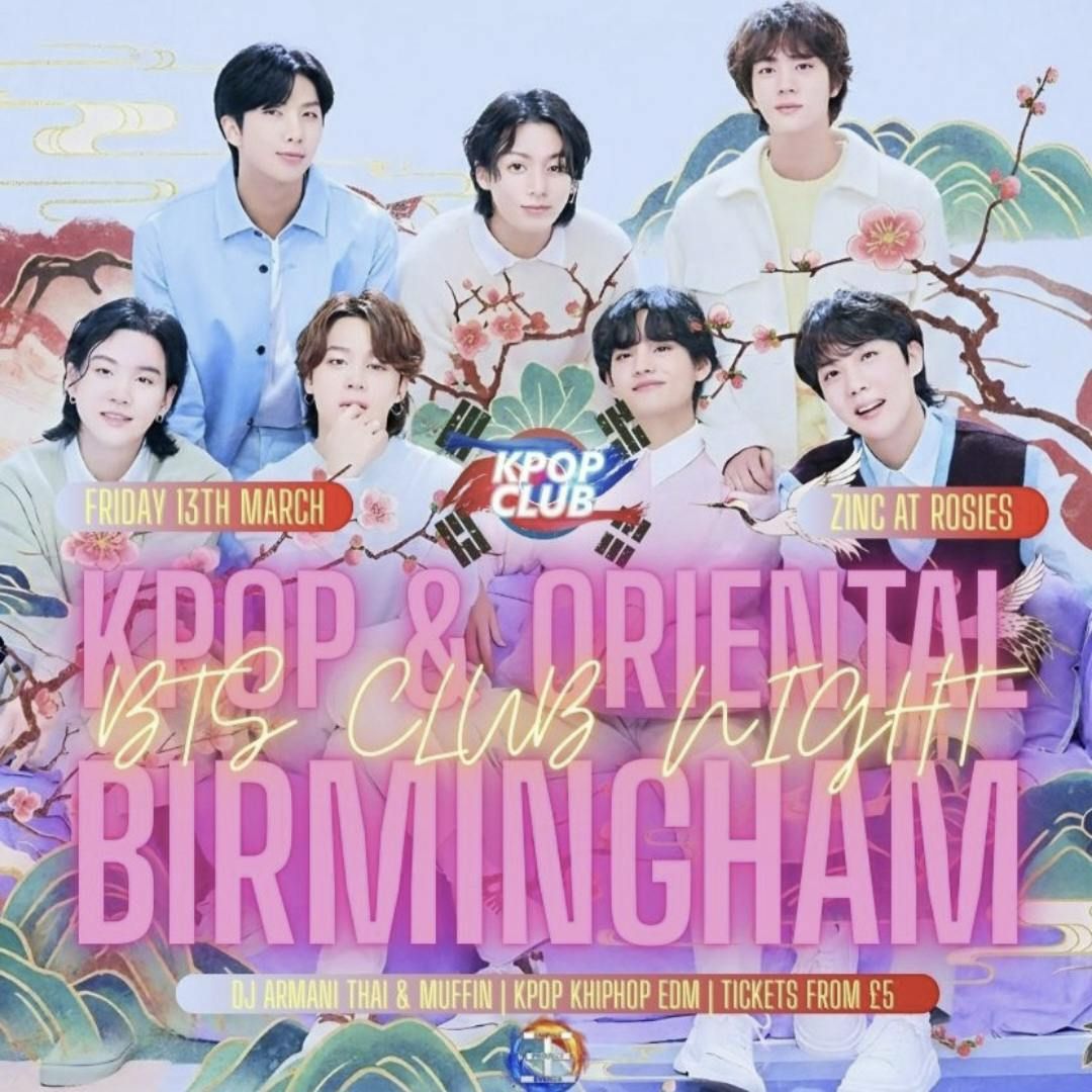 🔥BIRMINGHAM End Of Year Spring Party: BTS SPECIAL🔥KPop Club X Made In Asia Oriental Spring End Of Year Club Night with DJ Armani Thai | BTS Club Night | THE MIDLANDS BIGGEST ORIENTAL PARTY | £5 Tickets for Society Members & Dance Groups | KPop KHipHop EDM & More | 13/3/26Cherry Blossoms are Blooming, spring is here and BTS ARE FINALLY BACK! After heading off to military service, they are finally reunited for a WORLD TOUR! For this special occasion, @kpopclubevents , @madeinasiaevents , join together with Rosies to bring you the ultimate End Of Year Spring event on Friday 13th March!
