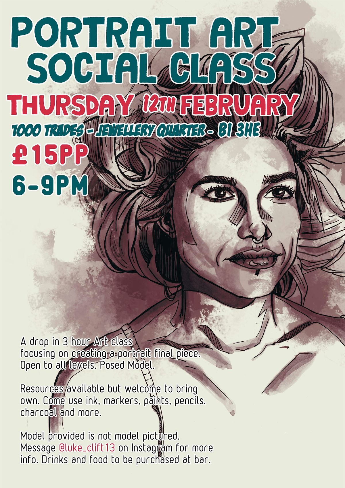 Birmingham Portrait Art Class - Pay on Door