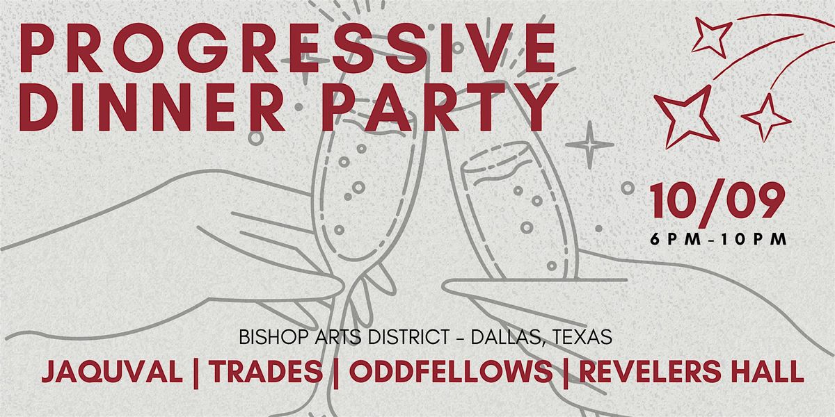 Join us Wednesday, October 9th from 6â10 PM for a flavorful night out in the Bishop Arts District! Weâre bringing together four of the neighborhoodâs most beloved spots for a chef-curated Progressive Dinner experience you wonât forget.