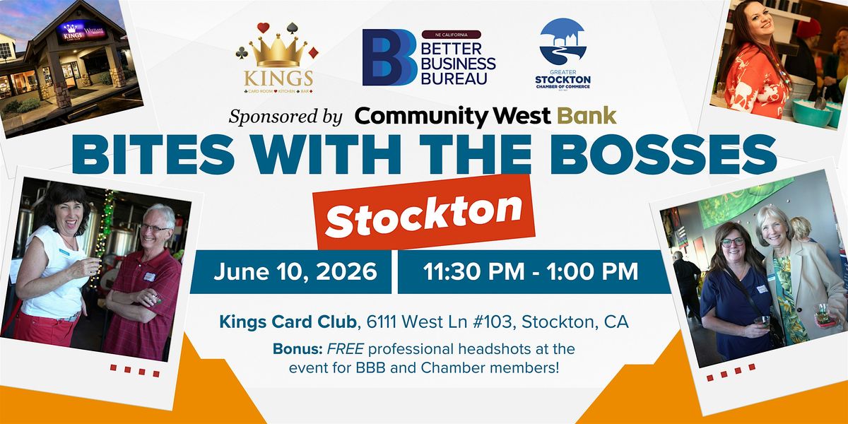 Join us for Bites with the Bosses, a purpose-driven lunch mixer hosted by BBB of Northeast California and the Greater Stockton Chamber of Commerce.
