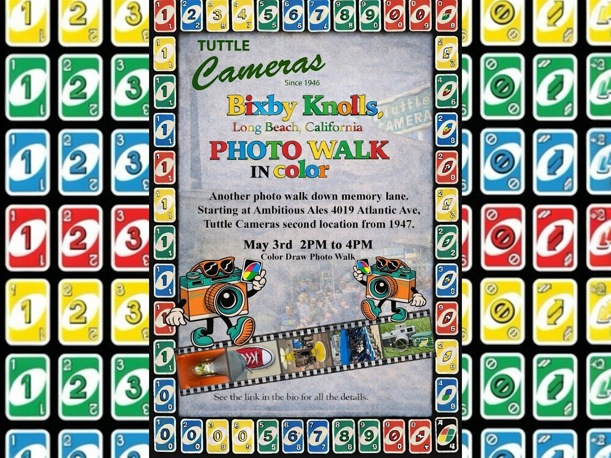 Join us for a color draw photo walk, as we continue to celebrate Tuttle Cameras 80th anniversary. This photo walk will start and end at Tuttle Cameras second location from 1947 to 2017 at Ambitous Ales at 4019 Atlantic Ave. in Ling Beach. What is a Color Draw Phot Walk? I'm glad you asked. Come with your camera loaded with color film or your digital camera set for color, and you will draw from a deck of UNO cards and that will be the color your looking for on this walk through the Bixby Know business District. We will end our walk with a hang out at Ambitous Ales were you can enjoy a soft drink or a famouse "I Like Tuttle" brew.
