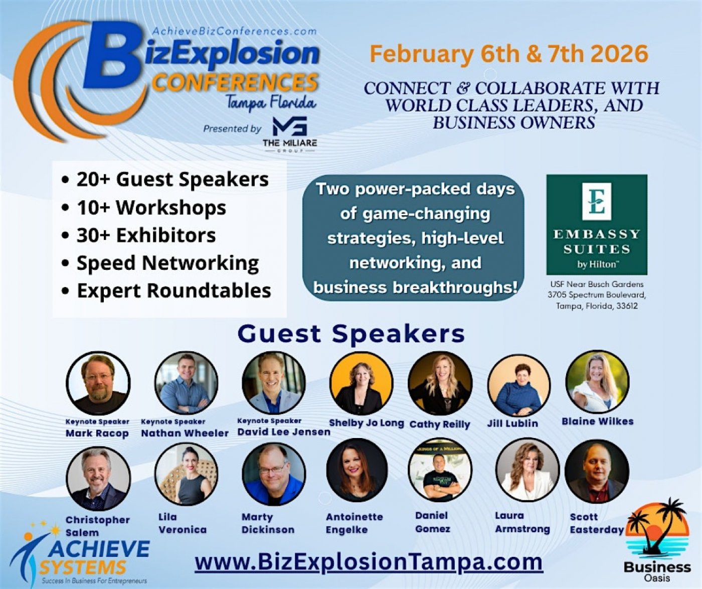 We're excited to announce that the February edition of the Biz Explosion Conference, part of Achieve Systems, is relocating from Denver, Colorado, in the majestic Rockies, to the vibrant city of Tampa, Florida.