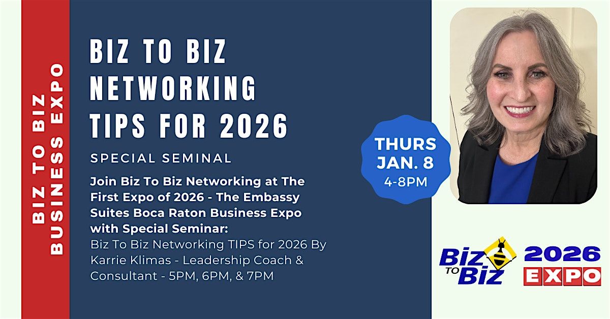 The First Biz To Biz Business Expo of 2026 with Special Seminar: Biz To Biz Networking TIPS for 2026 By Karrie Klimas - Leadership Coach & Consultant - FREE SEMINAR