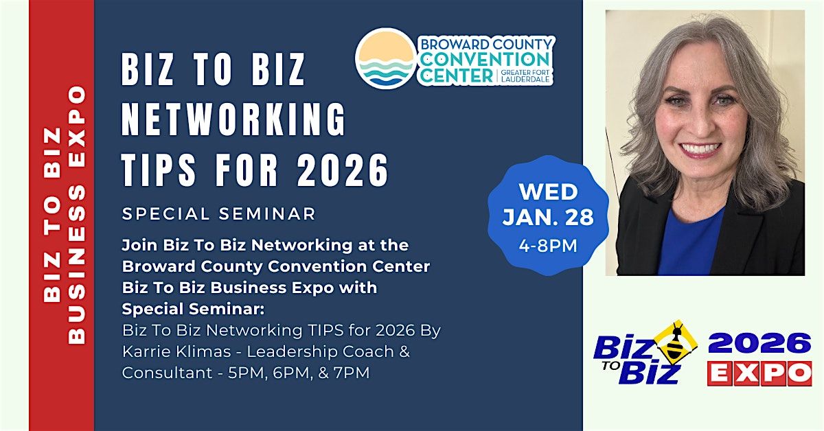 The Broward County Convention Center - Business Expo with Special Seminar: Biz To Biz Networking TIPS for 2026 By Karrie Klimas - Leadership Coach & Consultant - FREE SEMINAR