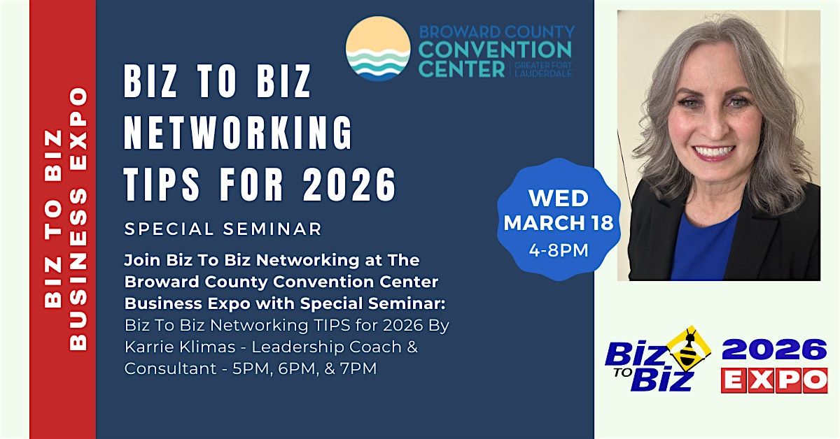 The Broward County Convention Center- Business Expo with Special Seminar: Biz To Biz Networking TIPS for 2026 By Karrie Klimas - Leadership Coach & Consultant - FREE SEMINAR
