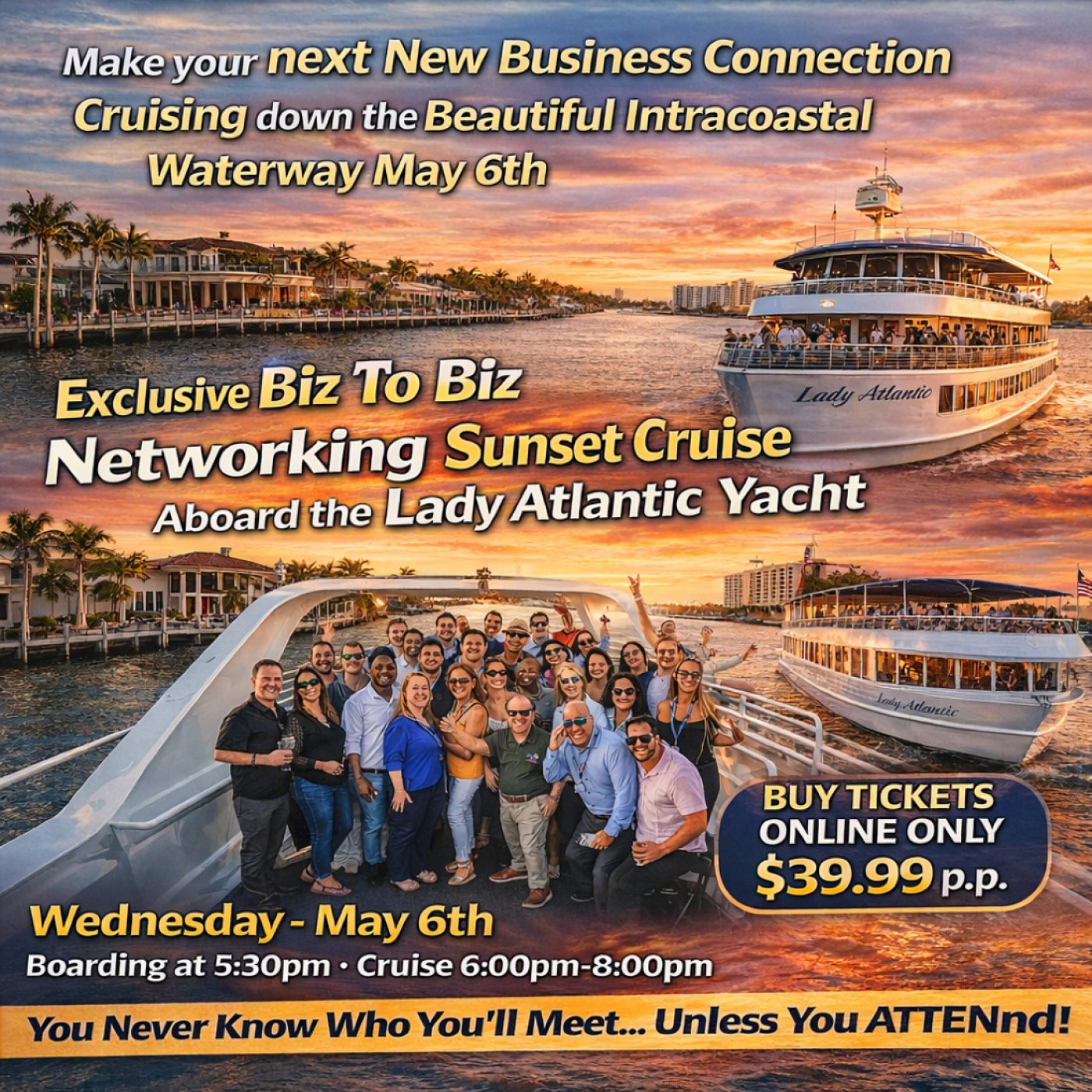 Biz to Biz Networking Invites You To Join Us May 6th on the Beautiful Lady Atlantic Cruise Yacht on the Intracoastal