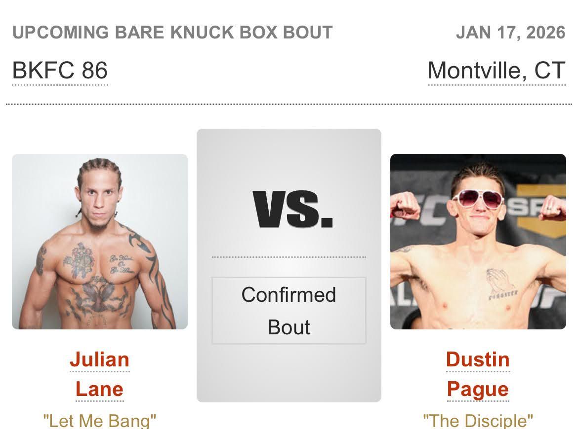 🌟 Be part of history at BKFC 86: Julian Lane vs Dustin Pague at Mohegan Sun Arena-CT, an extraordinary gathering that will captivate your imagination! 🏛️ The prestigious Mohegan Sun Arena-CT in Uncasville, CT sets the stage for an unforgettable experience on January 17th, 2026 at 06:00 PM. ✨ They are bringing together the finest elements of entertainment and innovation to create moments that will take your breath away. From the moment you arrive, you'll be immersed in an atmosphere of wonder and excitement. 🎯 This carefully planned event ensures every guest experiences something truly special. 🎊 Early booking is recommended for this must-attend event of the season!
