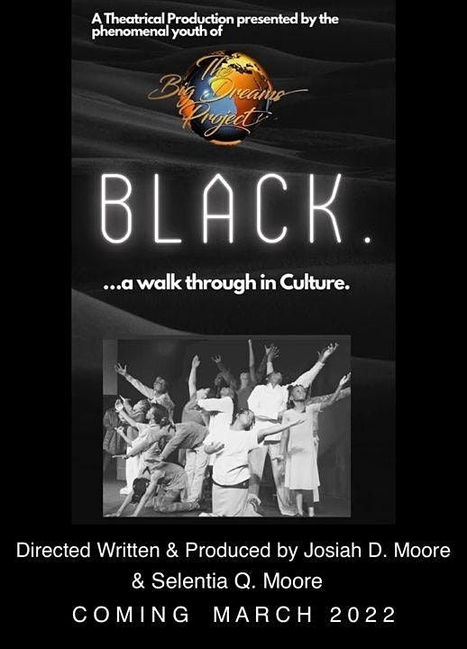 Come experience BLACK. A walkthrough in culture. Produced/Directed/Written by Selentia Moore and Josiah Moore.