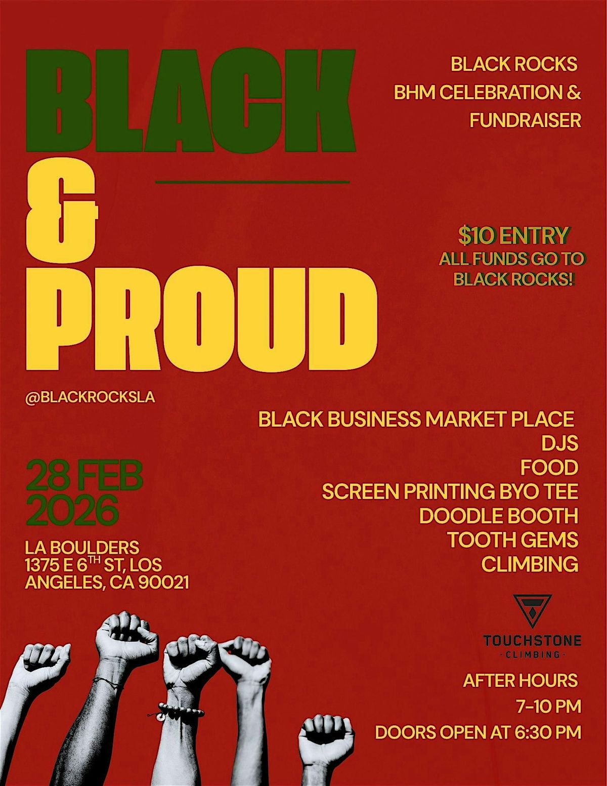 Join Black Rocks for Black & Proud, our Black History Month celebration, anniversary party and fundraiser. This after hours event supports Black Rocks as we work toward becoming a nonprofit and continue building space, resources and opportunities for the Black community through climbing and connection.