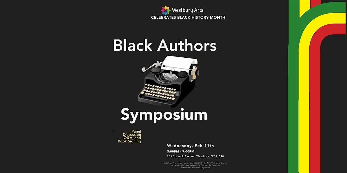 In honor of Black History Month, Westbury Arts is hosting its first Black Authors Symposium. Join this panel of aspiring and accomplished writers as they share their literary knowledge and their works. There will be discussions on writing styles, target markets, and choosing the right publishing path for you. This event will include a Q&A session, book signings, and the opportunity to mingle with the talented Black writers in our community.