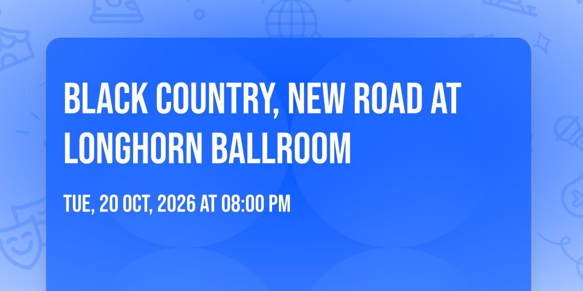 β¨ Experience the magic of Black Country, New Road at Longhorn Ballroom, where moments become memories that last a lifetime! ποΈ The iconic Longhorn Ballroom in Dallas, TX sets the perfect stage for an unforgettable celebration on October 20th, 2026 at 08:00 PM. π It's been a curated experience that brings together the best of entertainment and innovation, creating an atmosphere of wonder and excitement. From the moment you arrive, you'll be immersed in a world where the ordinary transforms into the extraordinary. π Book early to secure your place in what promises to be an event that will be talked about for years to come!