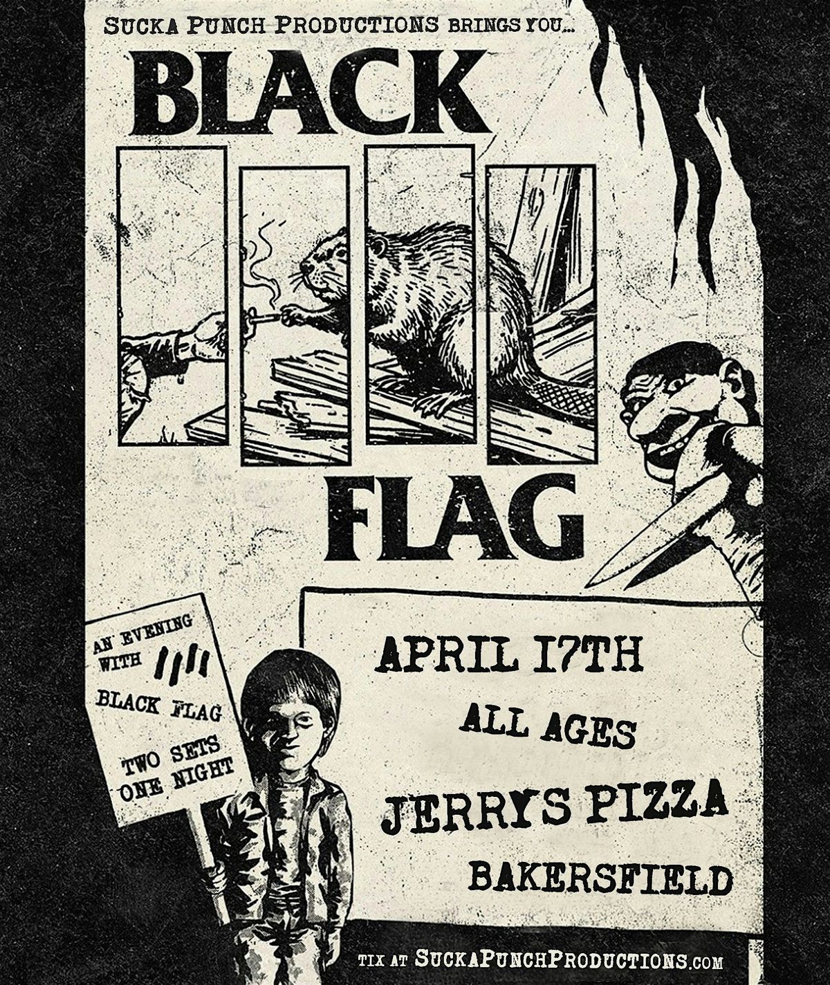 Get ready for BLACK FLAG live and loud! Join us in person at Jerrys Pizza for an unforgettable night of punk energy and killer vibes. Don't miss out on this epic show where the music hits hard and the crowd is electric. Grab your friends, bring your energy, and let’s make some noise together!