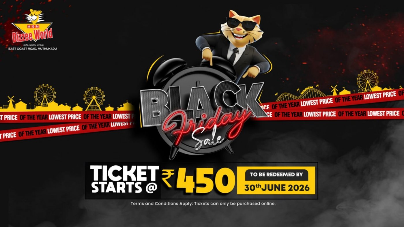Experience the biggest Black Friday celebration at MGM Dizzee World, Chennai. Enjoy a full day of fun, adventure and thrilling rides at the lowest price of the year.