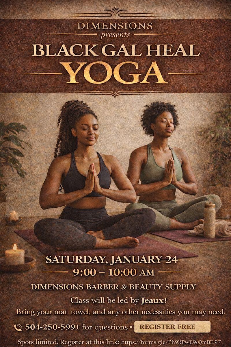 Come vibe with us at Black Gal Heal Yoga, an in-person healing experience hosted at Dimensions. This gathering is rooted in connection, restoration, and collective care. Whether you’re new to yoga or deep in your practice, this is a welcoming space designed to uplift and empower Black women through mindful movement, breathwork, and self-care.