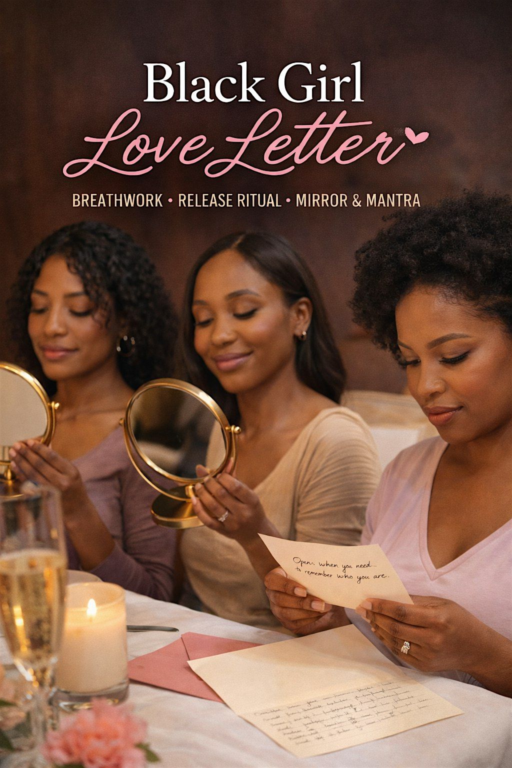 Black Girl Love Letter™ is an intimate, Black women-centered experience created for the woman who is doing the work quietly.