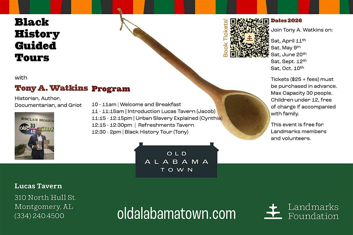 From a Montgomery backyard to a mission in Old Alabama Town. Tony Watkins, historian, documentarian, author, and griot, translated his past into a personal Black History Tour. Join us for an unforgettable experience and learn from the powerful stories behind our exhibits.
