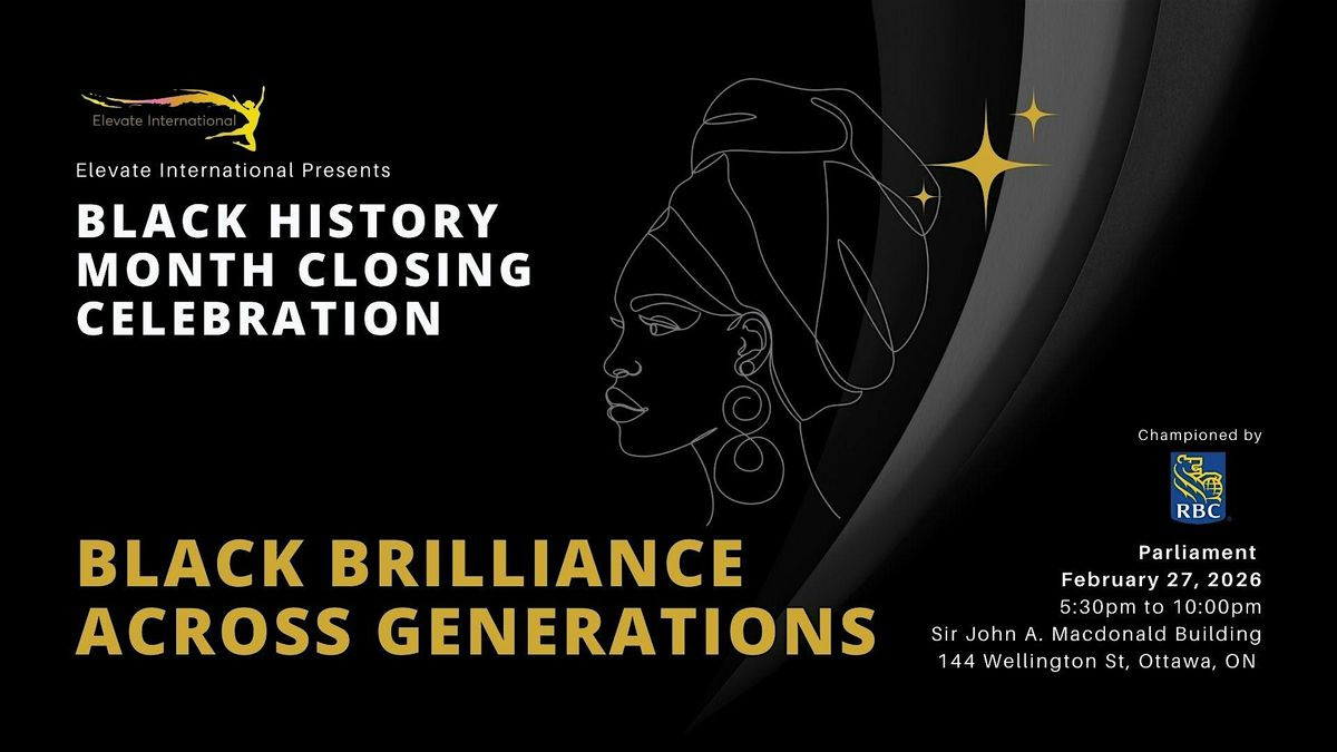 Elevate International, together with our presenting partner RBC we pleased to invite you to Elevate International's Black History Month Closing Ceremoney- Black Brilliance Across Generations : A special event designed to recognize and celebrate black women's leadership and contribution in our society.