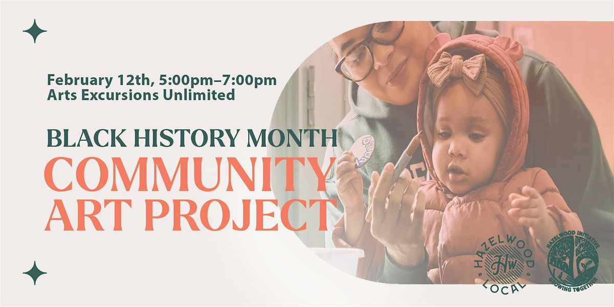 Hazelwood Initative, Hazelwood Local, and Arts Excursions Unlimited have partnered to host a free community art project to celebrate Black History Month and the Hazelwood Community!
