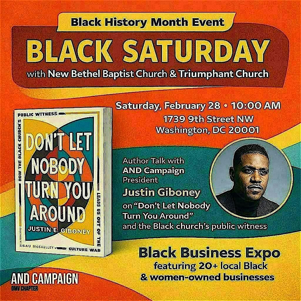 We are partnering with New Bethel Baptist Church and Triumphant Church to host Black Saturday, a day of acknowledging the legacy of activism in the Black church and the impact of Black businesses on the DMV community.