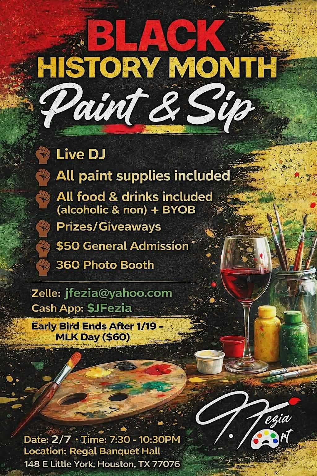This is more than a paint night — it’s a curated experience honoring legacy, creativity, and black excellence.If you've attended a prior event, Early Bird Admission remains $50. All others, $60 after MLK Day (1/19).