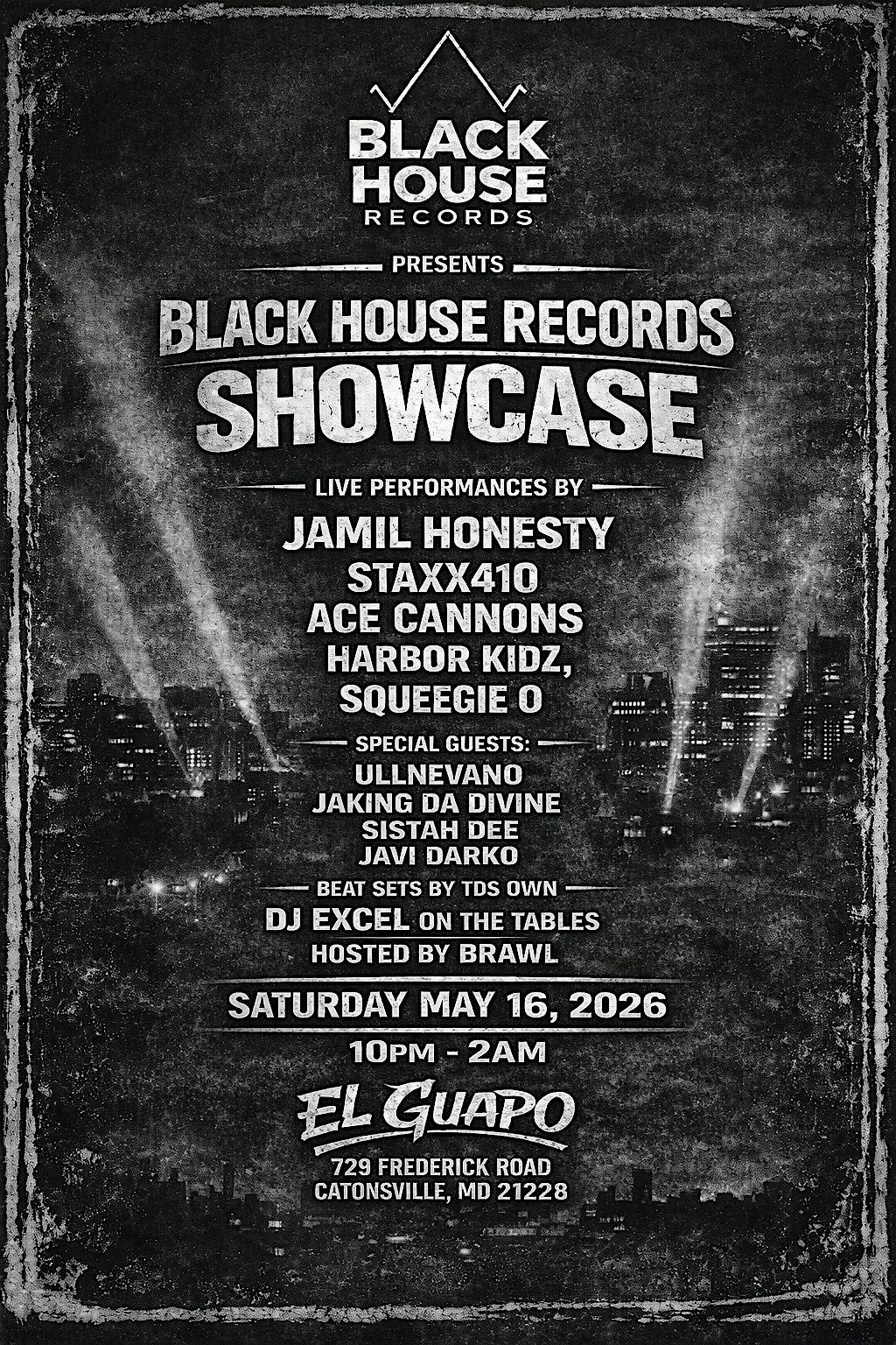Black House Records presents a live showcase celebrating the talent and sound of the label. This event brings together a powerful lineup of artists delivering high-energy performances and raw lyricism.