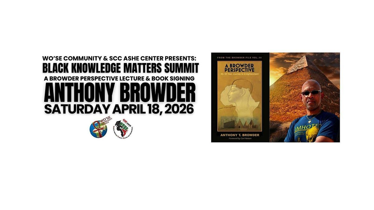 Black Knowledge Matters Summit is featuring world renowned author and historian Anthony Browder and his latest publication, A Browder Perspective. Books will be available for purchase.