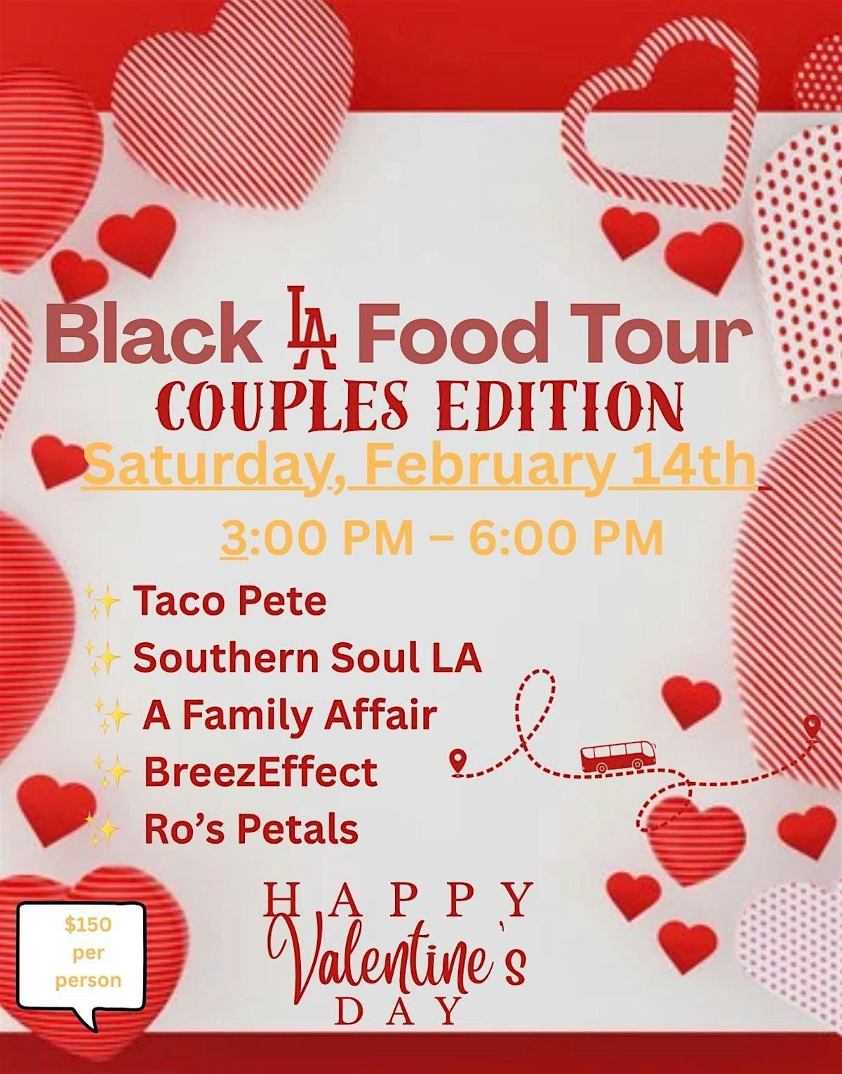 Celebrate love with a curated couples food stroll through Los Angeles, featuring some of the city’s favorite Black-owned spots. This experience includes flavorful bites from Taco Pete, soulful classics at Southern Soul LA, and comforting favorites from A Family Affair. Couples will enjoy wine from BreezEffect and end the stroll with a beautiful floral moment provided by Ro's Petals.