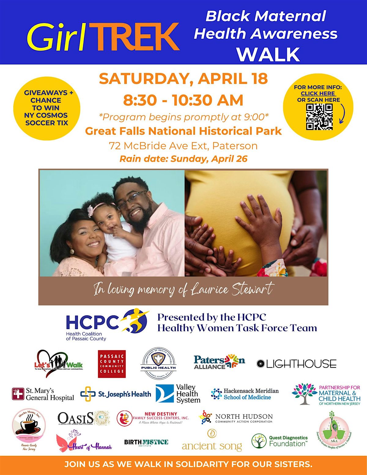 Join the Health Coalition of Passaic County for the 4th Annual Black Maternal Health Awareness Walk. Honoring the legacy of Latrice Stewart.