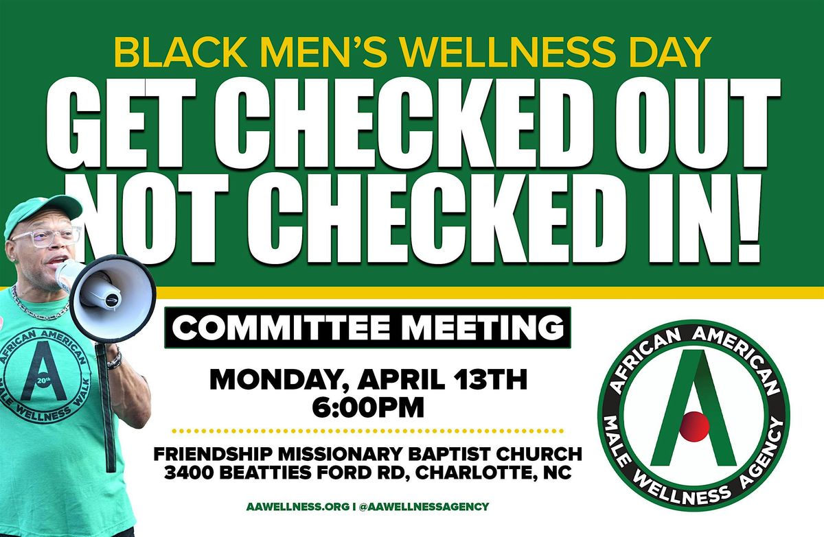 The African American Male Wellness Agency is hosting the Black Men's Wellness Day Tour in 23 cities across the US! Join us for our April committee meeting to learn more about our annual health fair & 5k run. Bring your business cards to network with other community partners. RSVP required.