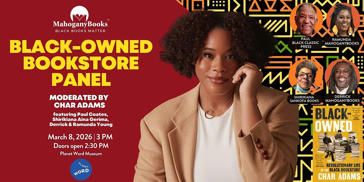 MahoganyBooks is excited to host the Black-Owned Bookstore Panel w/ Author Char Adams. Char's book, celebrates the LIVING history of the black bookstore, and the power of these spaces. Featured on the panel will be amazing local black bookstore owners: Paul Coates, owner of Black Classic Press; Shirikiana Aina Gerima, owner of Sankofa Bookstore, and of course, our very own Ramunda Young, owner of MahoganyBooks.