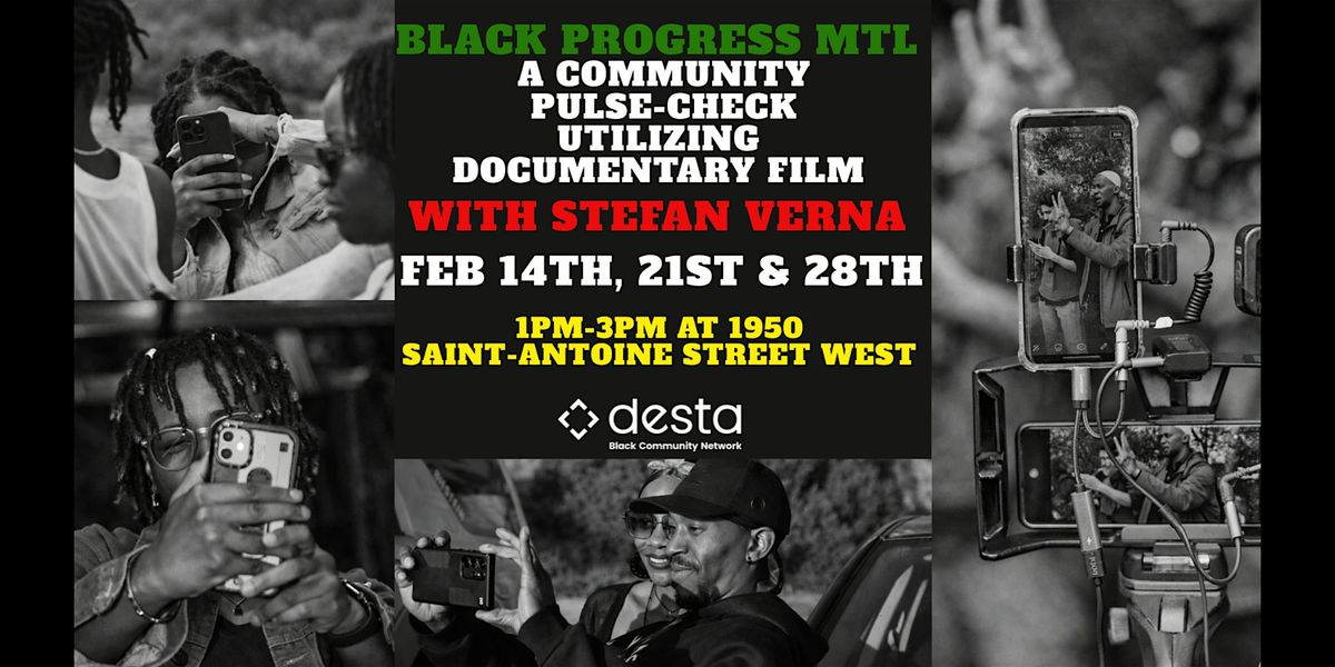 This February at Desta, we’re hosting BLACK PROGRESS MTL: A Community Pulse-Check Utilizing Documentary Film with Stefan Verna—a free, hands-on workshop series running on February 14th, 21st, and 28th from 1-3PM.