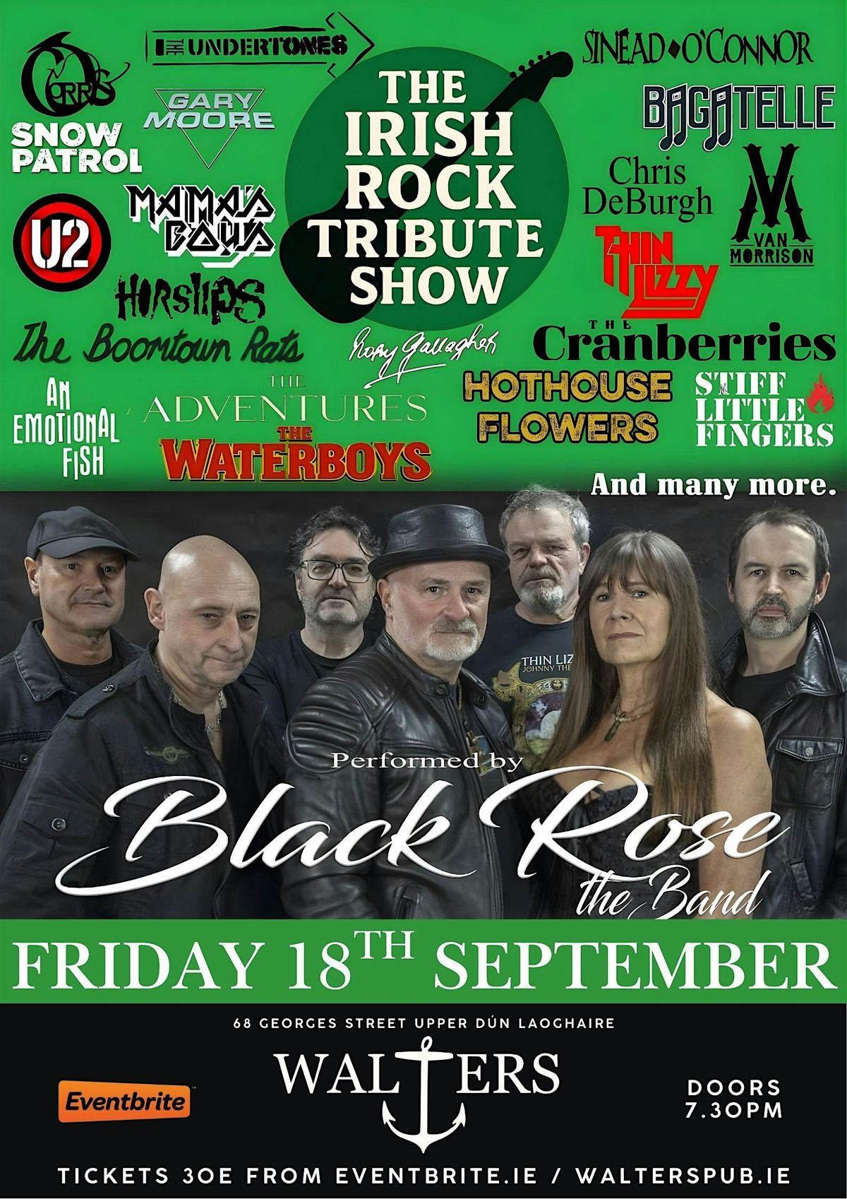 From U2 to Hothouse Flowers, The Cranberries to The Undertones, Snow Patrol to The Corrs, Bagatelle to Van Morrison, Thin Lizzy to Rory Gallagher and beyond... The Black Rose band celebrate the legendary sounds that shaped popular Irish music both locally and globally.