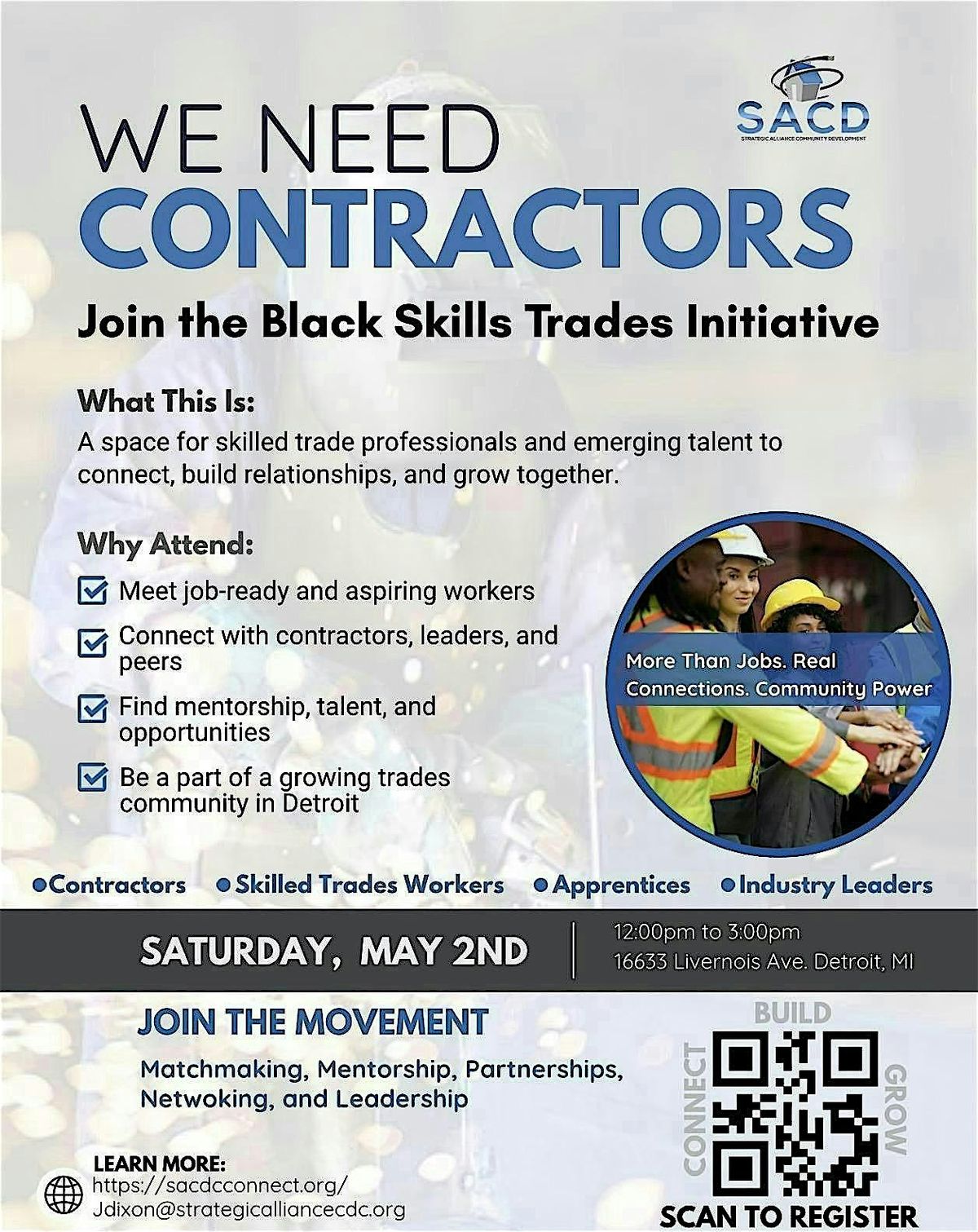 Join us for a powerful gathering of contractors, skilled trades professionals, and emerging talent as we build stronger connections across metro Detroit’s trades ecosystem.