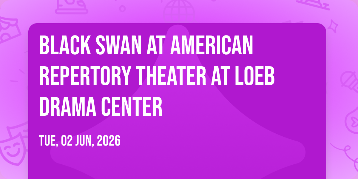 π Welcome to Black Swan at American Repertory Theater at Loeb Drama Center, where the impossible becomes possible and dreams take flight! ποΈ Join us at American Repertory Theater at Loeb Drama Center in the heart of Cambridge, MA for an event that will redefine your expectations. π On June 24th, 2026 at 07:30 PM, witness the transformation of space and time into something truly magical. β¨ It's a curated experience combining the best of innovation, entertainment, and community spirit, creating moments that will be remembered for years to come. Whether you're a first-time visitor or a seasoned enthusiast, prepare to be amazed. π Book now to ensure your place in this unforgettable experience!