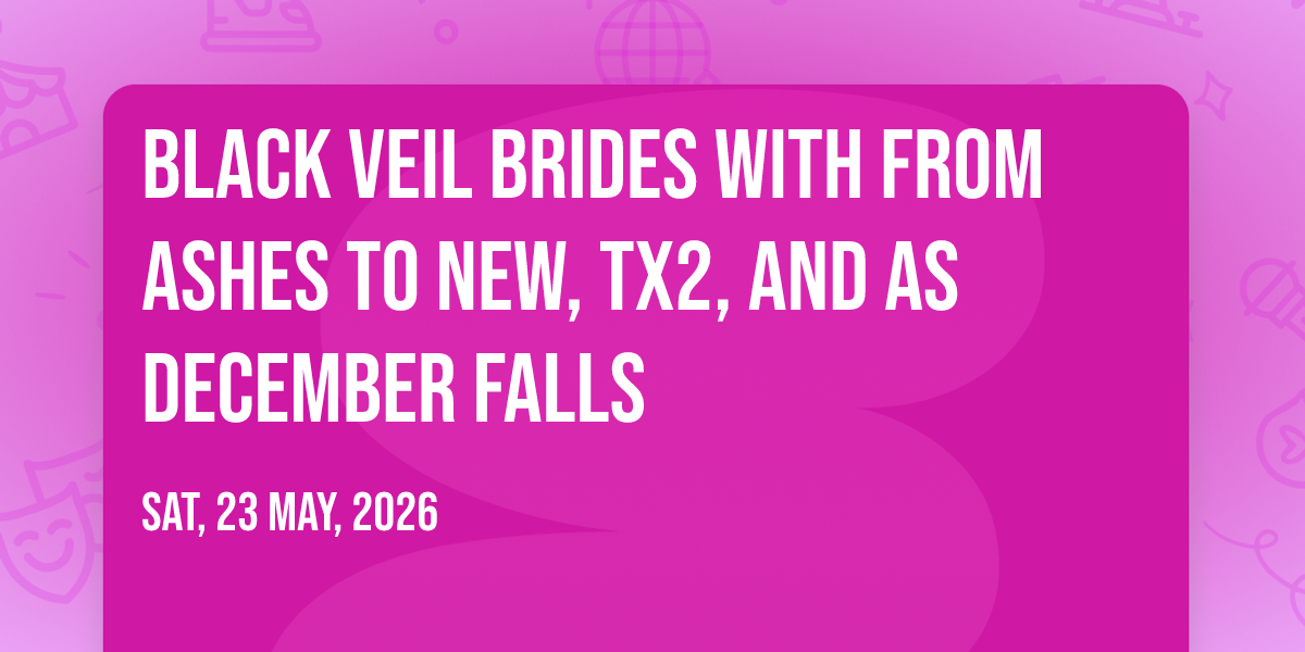 π Location: 43.0808, -89.3748β¨ Experience the magic of Black Veil Brides with From Ashes To New, TX2, and As December Falls, where moments become memories that last a lifetime! ποΈ The iconic The Sylvee in Madison, WI sets the perfect stage for an unforgettable celebration on May 23rd, 2026 at 11:35 PM. π It's been a curated experience that brings together the best of entertainment and innovation, creating an atmosphere of wonder and excitement. From the moment you arrive, you'll be immersed in a world where the ordinary transforms into the extraordinary. π Book early to secure your place in what promises to be an event that will be talked about for years to come!