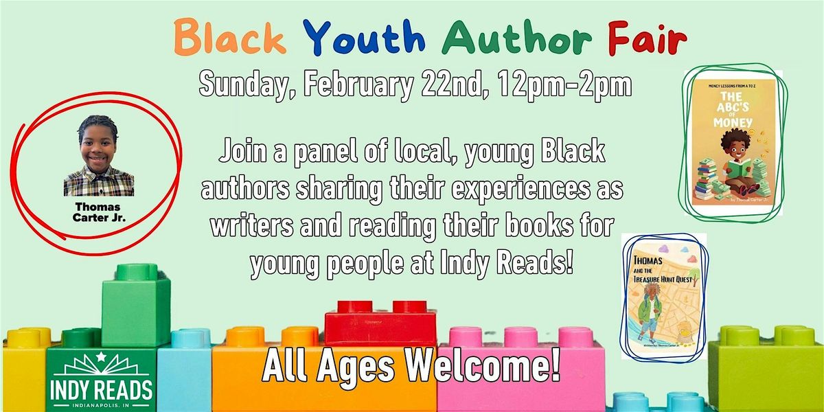 Join a panel of local, young Black authors on Februrary 22nd from 12pm-2pm as they share their experiences as published writers, along with a reading and discussion of their books for fellow young people at Indy Reads.