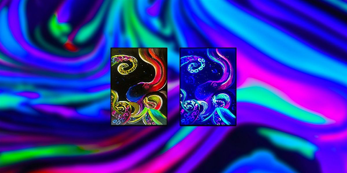 Unleash your inner artist as you paint a mesmerizing blacklight octopus masterpiece while sipping on your favorite drink. No experience needed, just bring your creativity