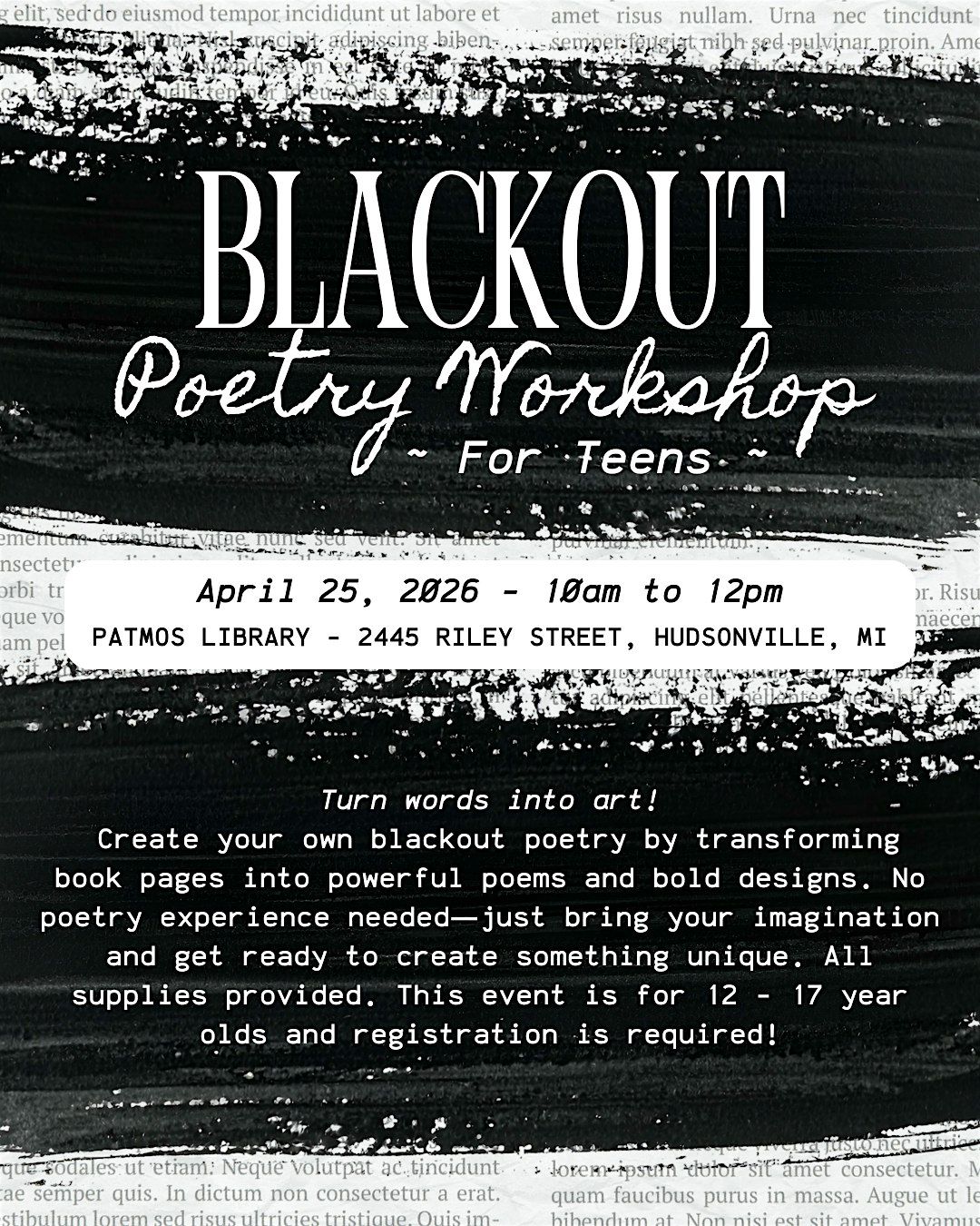 Blackout Poetry Workshop for Teens @ Patmos Library