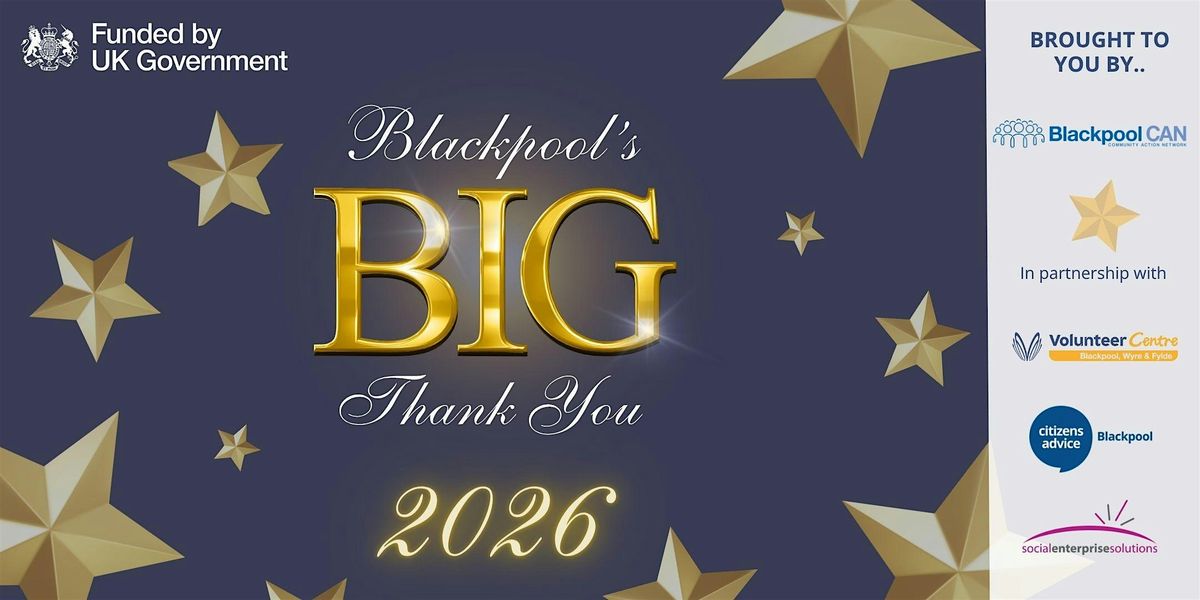 Blackpoolβs Big Thank You Awards celebrate the volunteers and organisations in Blackpool that contribute their time, skills, and experience to making our town great. Our free event includes an awards ceremony, refreshments and time to come together to meet other volunteers.