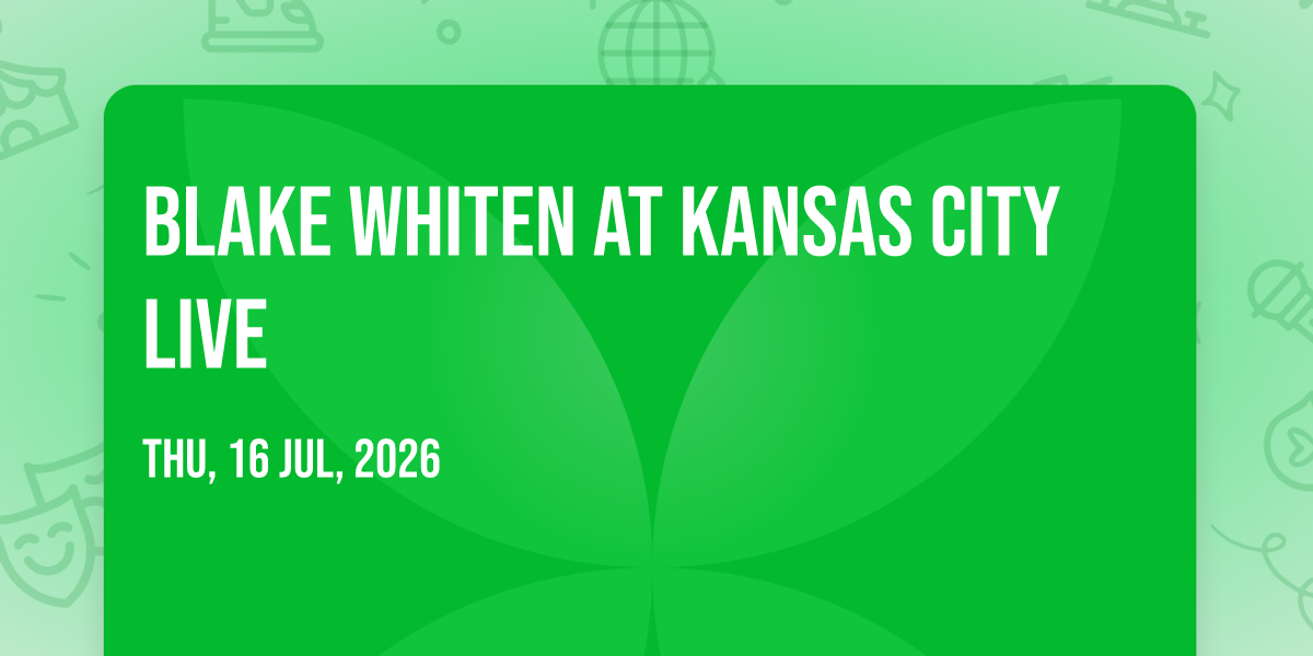 π Step into a world of wonder at Blake Whiten at Kansas City Live, where extraordinary moments await! ποΈ Located at Kansas City Live in dynamic Kansas City, MO, this event will become the talk of the town. π Join us on July 16th, 2026 at 07:00 PM for a celebration that defies the ordinary. β¨ This curated experience brings together the best of entertainment, culture, and community spirit. Every detail has been thoughtfully planned to ensure an unforgettable experience for all our guests. π― Take advantage of this opportunity to be part of something special. π Early registration is recommended as space is limited!