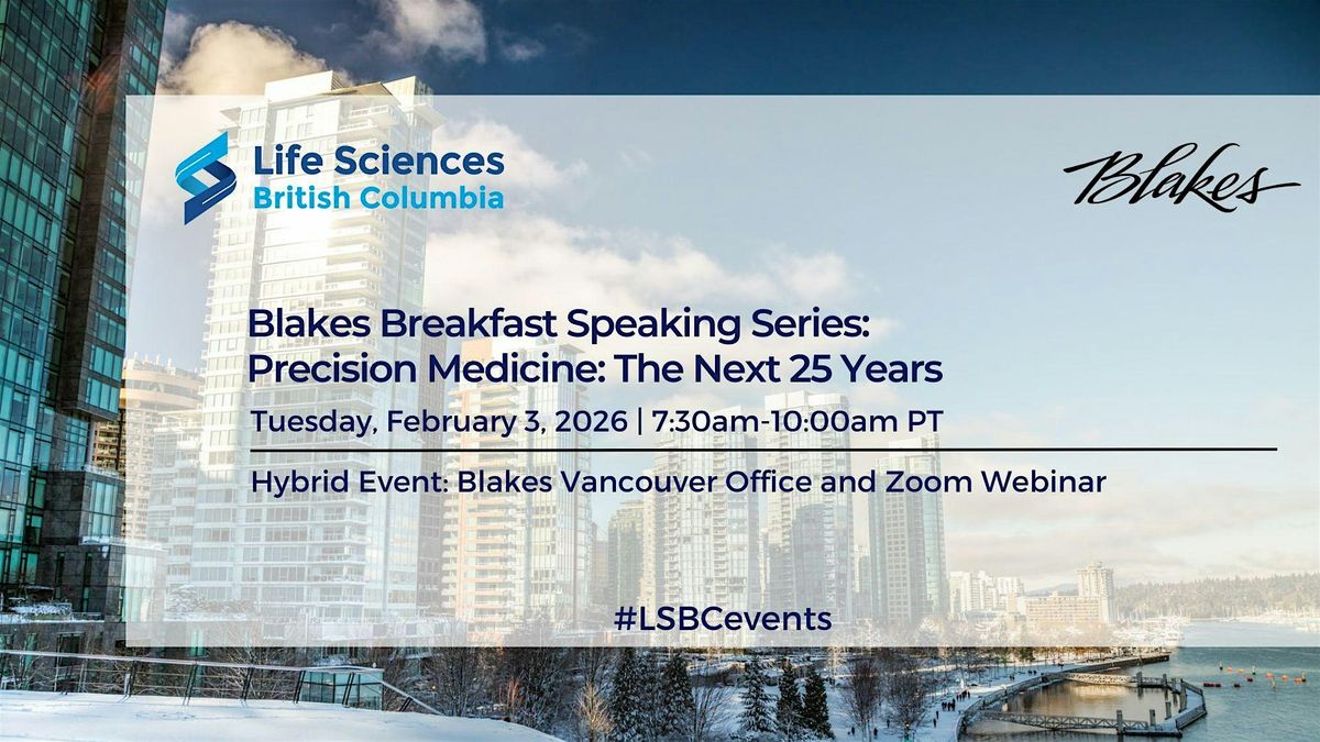 Blakes Breakfast Speaking Series: Precision Medicine: The Next 25 Years is happening on Tuesday, February 3, from 7:30 AM β 10:00 AM PT in person, or 8:00 AM β 9:30 AM PT online.