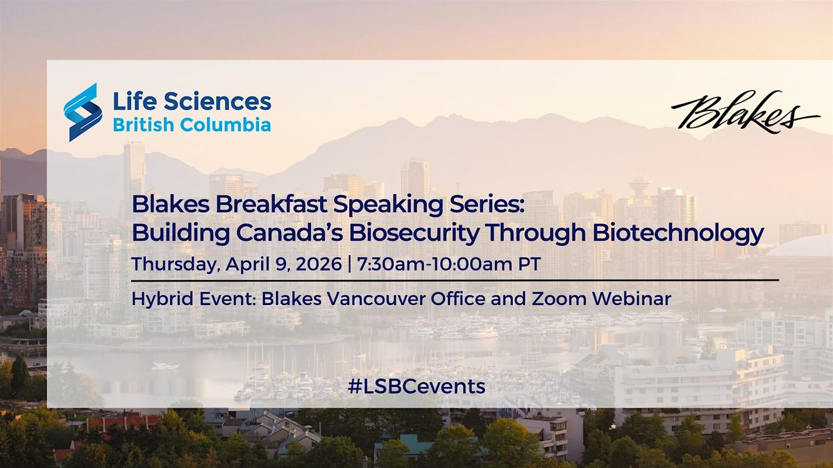 Blakes Breakfast Speaking Series: Building Canada's Biosecurity Through Biotechnology is happening on Thursday, April 9 from 7:30 AM β 10:00 AM PT in person, or 8:00 AM β 9:30 AM PT online.
