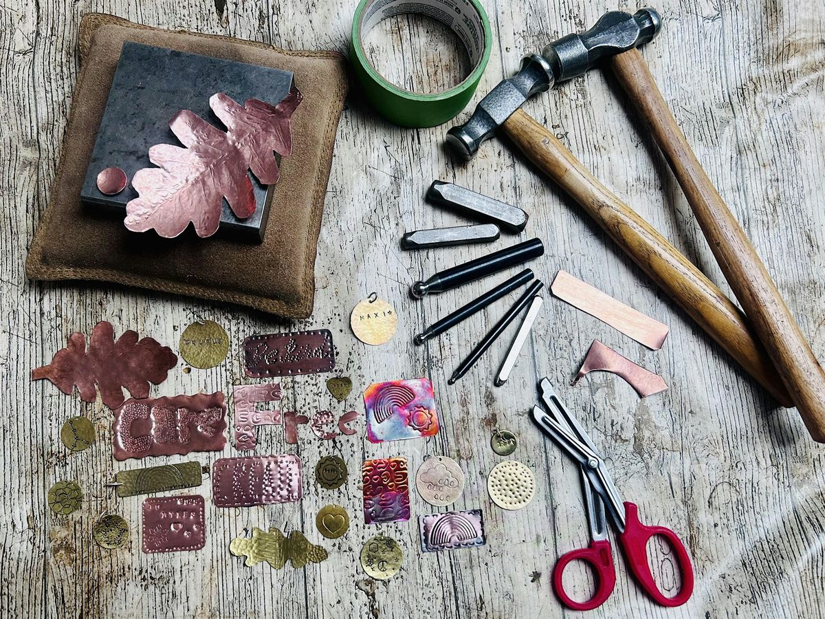 You’ll work with copper and brass as you are guided step by step through the process. You'll have the opportunity to experiment with a variety of hammers to create different textures and finishes, and then personalise your designs using a wide selection of patterned and letter stamps.