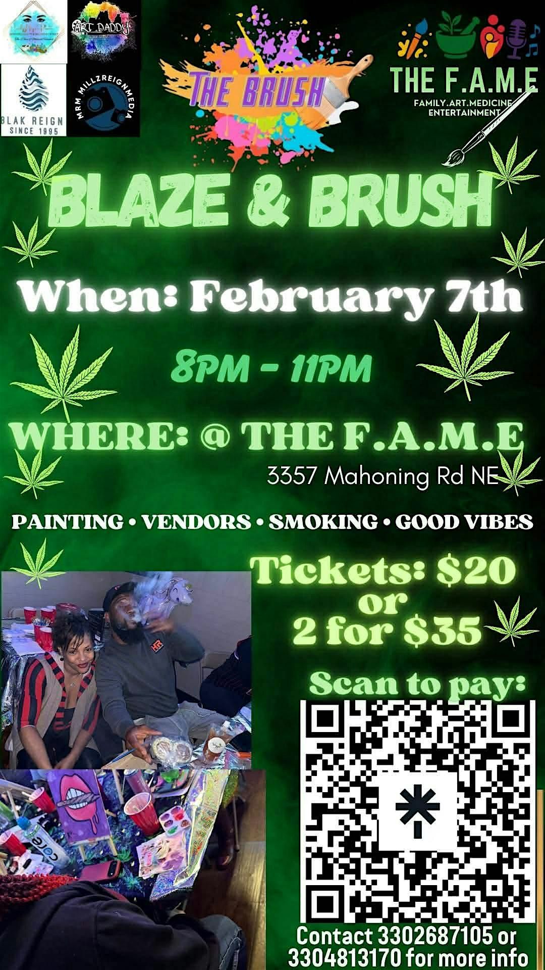 Welcome to Blaze & Brush (Puff & Paint)! Join us at 3357 Mahoning Rd NE on February 7, 2026 at 8:00 PM (Eastern Time) for a night of creativity and relaxation. Grab your friends and unleash your inner artist while enjoying some herbal inspiration. No experience necessary, just bring your positive vibes! Let's paint the night away together. See you there!