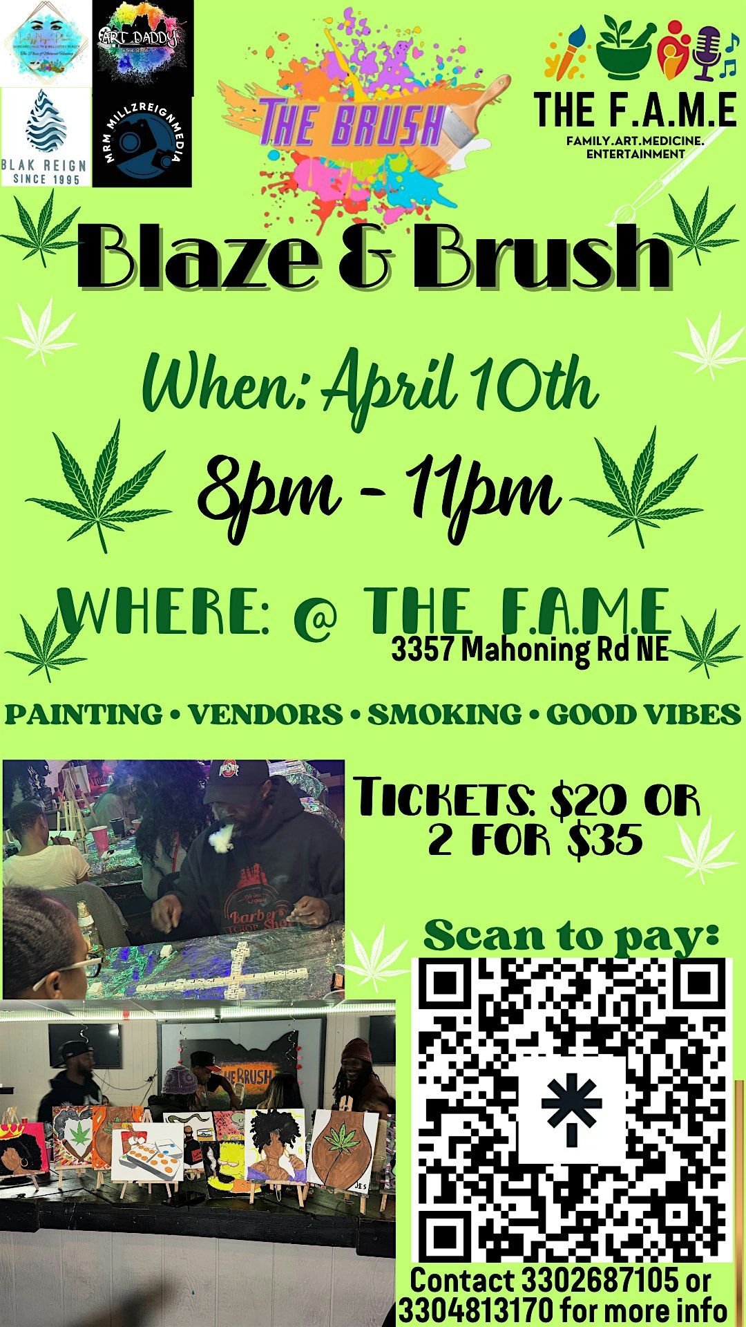 Welcome to Blaze & Brush (Puff & Paint)! Join us at 3357 Mahoning Rd NE on February 7, 2026 at 8:00 PM (Eastern Time) for a night of creativity and relaxation. Grab your friends and unleash your inner artist while enjoying some herbal inspiration. No experience necessary, just bring your positive vibes! Let's paint the night away together. See you there!