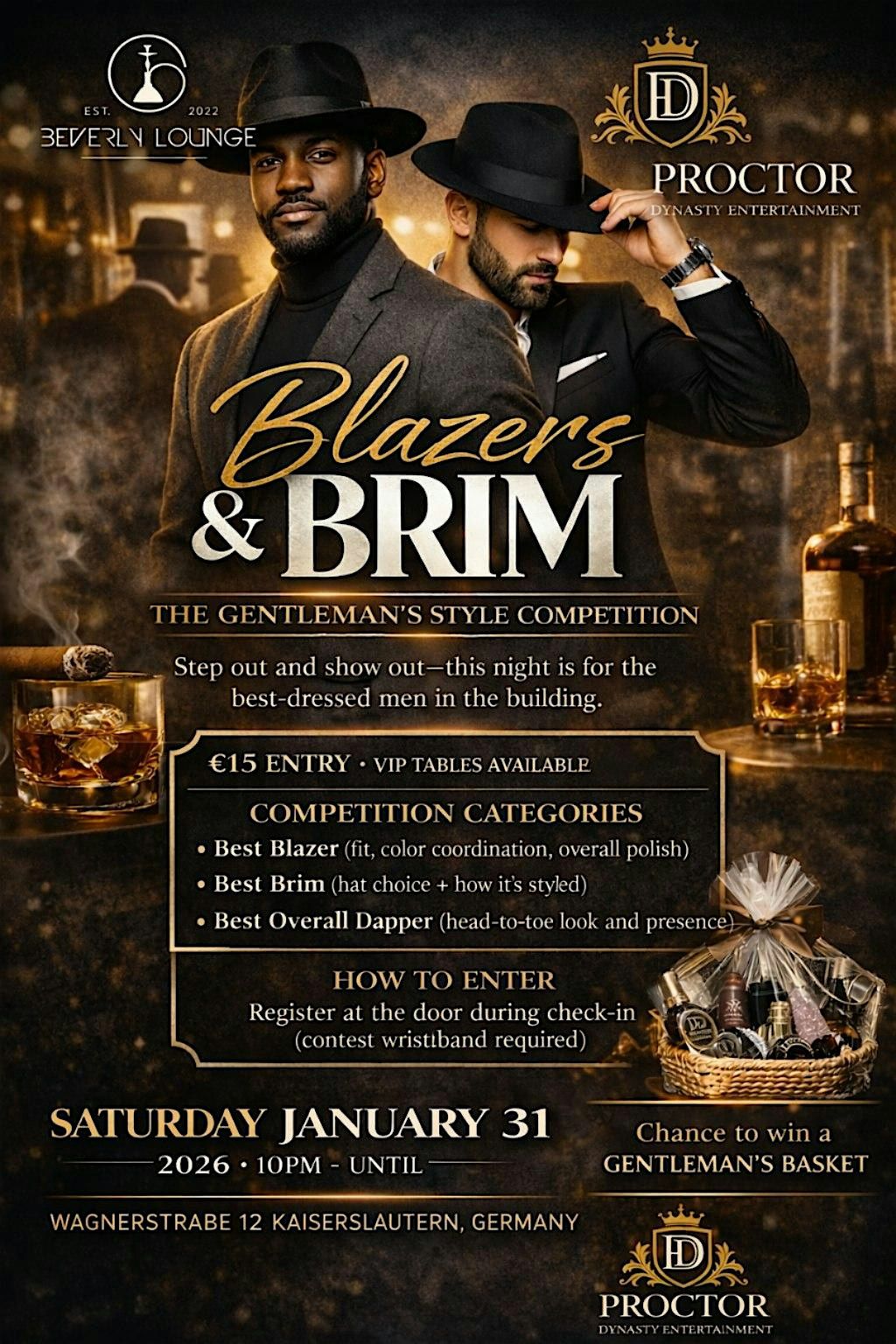 Blazers & Brim: The Gentleman’s Style Competition is an elevated night out where style, confidence, and presence take the spotlight. Whether you’re coming to compete or to vibe and watch the room light up with classic gentleman energy, expect a premium lounge atmosphere, great drinks, and an unforgettable competition.
