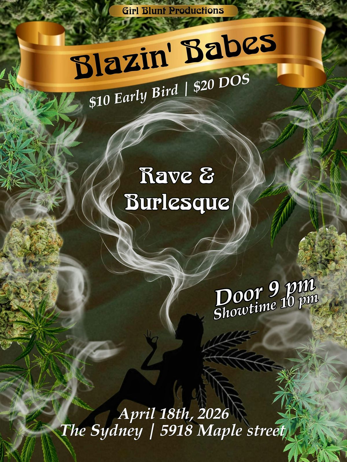 This stoner rave channels deep bass, psychedelic visuals, and raw burlesque energy into one immersive experience. Between euphoric drops and decadent reveals, the night flows in a blur of glitter, smoke, and bass. Dress loud, dance harder, and vibe higher—this is where rave culture meets tease culture.